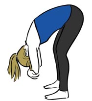 How: Standing with your feet hip-width apart, hinge forward lowering your torso while keeping a little bend in your knees. Make a frame around your head by holding each elbow with the opposite hand and let your torso drop. Feel your back ribs expand on the inhales and low belly lift on the exhales. Stay for 30-60 seconds.